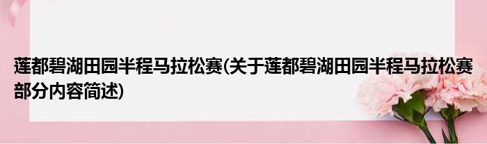 莲都碧湖田园半程马拉松赛(关于莲都碧湖田园半程马拉松赛部分内容简述)