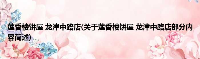 莲香楼饼屋 龙津中路店(关于莲香楼饼屋 龙津中路店部分内容简述)
