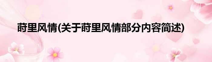 导读 大家好,今天小方来说说一篇关于莳里风情,关于莳里风情部分内容简述的文章,那么现在就为大家来简单介绍下,希望对各位小伙伴们有所帮助。