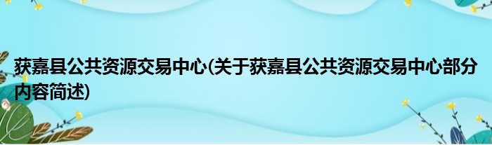 获嘉县公共资源交易中心(关于获嘉县公共资源交易中心部分内容简述)