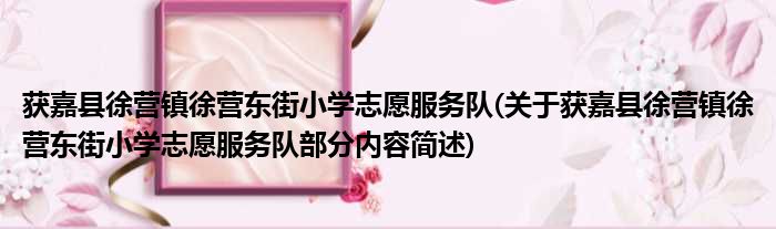 获嘉县徐营镇徐营东街小学志愿服务队(关于获嘉县徐营镇徐营东街小学志愿服务队部分内容简述)