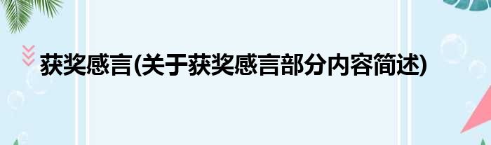 导读 大家好,今天小方来说说一篇关于获奖感言,关于获奖感言部分内容简述的文章,那么现在就为大家来简单介绍下,希望对各位小伙伴们有所帮助。