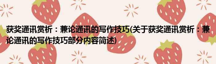 获奖通讯赏析:兼论通讯的写作技巧(关于获奖通讯赏析:兼论通讯的写作技巧部分内容简述)
