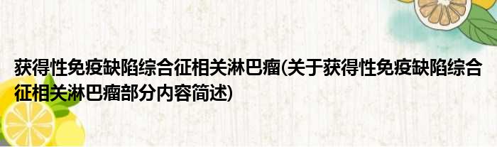 获得性免疫缺陷综合征相关淋巴瘤(关于获得性免疫缺陷综合征相关淋巴瘤部分内容简述)