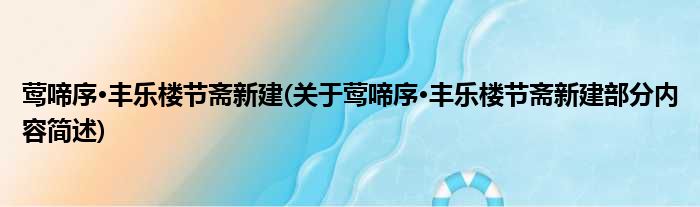 莺啼序·丰乐楼节斋新建(关于莺啼序·丰乐楼节斋新建部分内容简述)