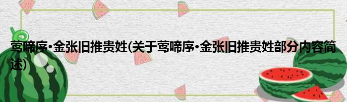 莺啼序·金张旧推贵姓(关于莺啼序·金张旧推贵姓部分内容简述)