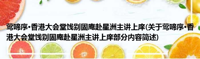 莺啼序·香港大会堂饯别固庵赴星洲主讲上庠(关于莺啼序·香港大会堂饯别固庵赴星洲主讲上庠部分内容简述)