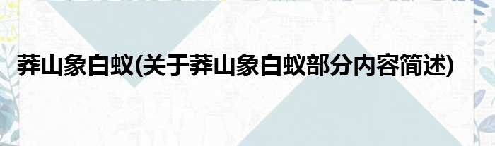 导读 大家好,今天小方来说说一篇关于莽山象白蚁,关于莽山象白蚁部分内容简述的文章,那么现在就为大家来简单介绍下,希望对各位小伙伴们有所帮
