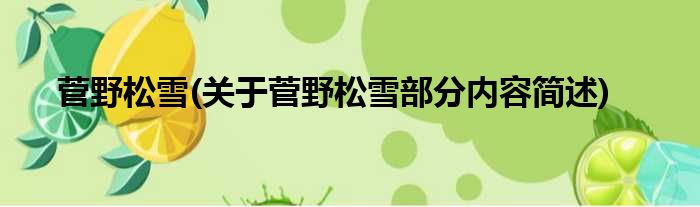 导读 大家好,今天小方来说说一篇关于菅野松雪,关于菅野松雪部分内容简述的文章,那么现在就为大家来简单介绍下,希望对各位小伙伴们有所帮助。