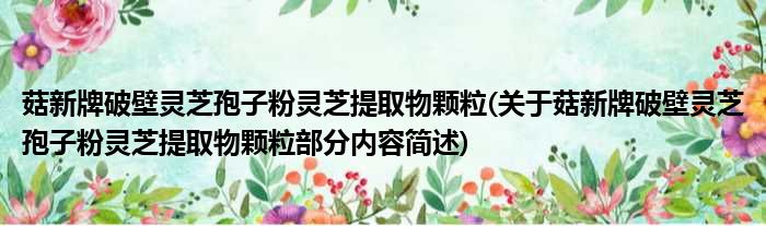 菇新牌破壁灵芝孢子粉灵芝提取物颗粒(关于菇新牌破壁灵芝孢子粉灵芝提取物颗粒部分内容简述)