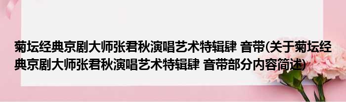 菊坛经典京剧大师张君秋演唱艺术特辑肆 音带(关于菊坛经典京剧大师张君秋演唱艺术特辑肆 音带部分内容简述)