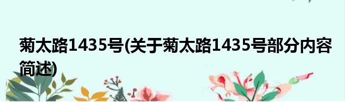 菊太路1435号(关于菊太路1435号部分内容简述)