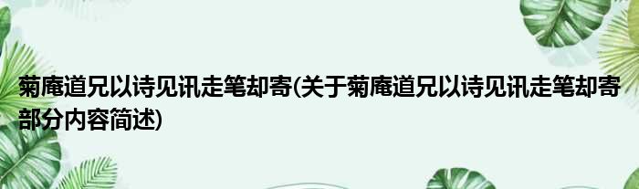 菊庵道兄以诗见讯走笔却寄(关于菊庵道兄以诗见讯走笔却寄部分内容简述)