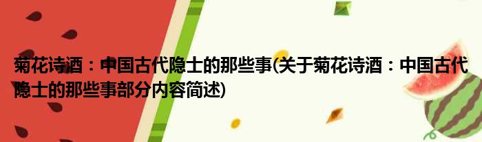 导读 大家好,今天小方来说说一篇关于菊花诗酒:中国古代隐士的那些事,关于菊花诗酒:中国古代隐士的那些事部分内容简述的文章,那么现在就为大