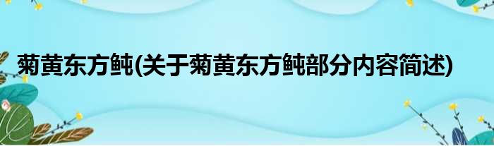 菊黄东方鲀(关于菊黄东方鲀部分内容简述)