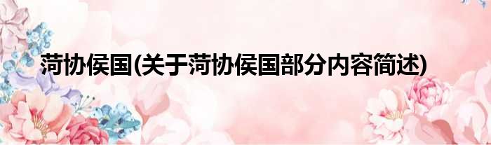 菏协侯国(关于菏协侯国部分内容简述)