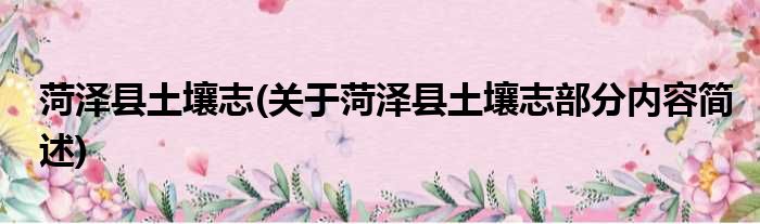 菏泽县土壤志(关于菏泽县土壤志部分内容简述)
