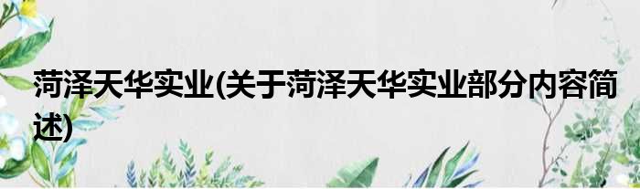菏泽天华实业(关于菏泽天华实业部分内容简述)