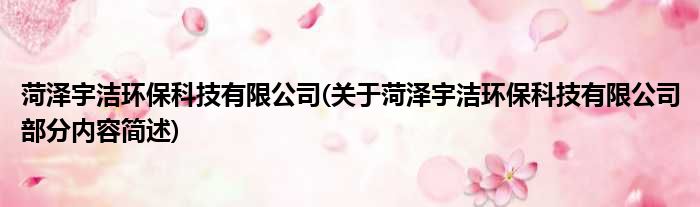 菏泽宇洁环保科技有限公司(关于菏泽宇洁环保科技有限公司部分内容简述)