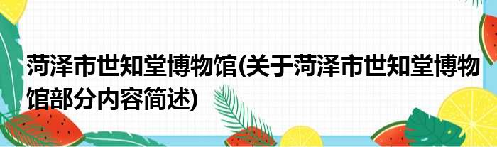菏泽市世知堂博物馆(关于菏泽市世知堂博物馆部分内容简述)