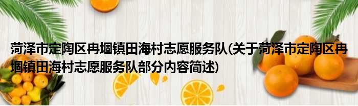 菏泽市定陶区冉堌镇田海村志愿服务队(关于菏泽市定陶区冉堌镇田海村志愿服务队部分内容简述)