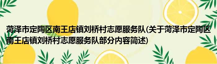 菏泽市定陶区南王店镇刘桥村志愿服务队(关于菏泽市定陶区南王店镇刘桥村志愿服务队部分内容简述)