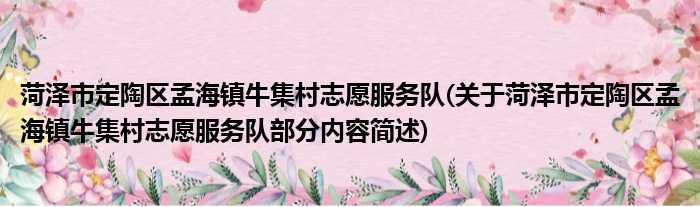 菏泽市定陶区孟海镇牛集村志愿服务队(关于菏泽市定陶区孟海镇牛集村志愿服务队部分内容简述)