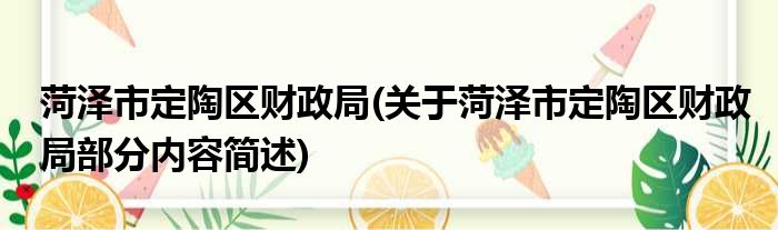 菏泽市定陶区财政局(关于菏泽市定陶区财政局部分内容简述)