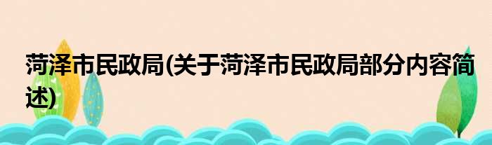 菏泽市民政局(关于菏泽市民政局部分内容简述)
