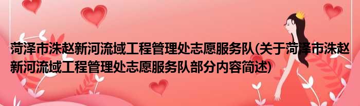 导读 大家好,今天小方来说说一篇关于菏泽市洙赵新河流域工程管理处志愿服务队,关于菏泽市洙赵新河流域工程管理处志愿服务队部分内容简述的文章
