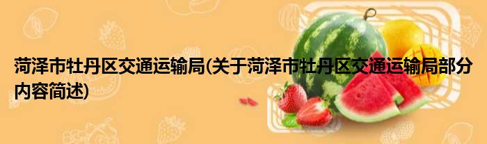 菏泽市牡丹区交通运输局(关于菏泽市牡丹区交通运输局部分内容简述)