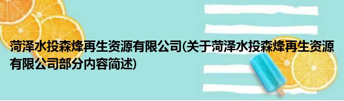 菏泽水投森烽再生资源有限公司(关于菏泽水投森烽再生资源有限公司部分内容简述)