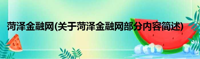 菏泽金融网(关于菏泽金融网部分内容简述)
