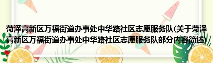 菏泽高新区万福街道办事处中华路社区志愿服务队(关于菏泽高新区万福街道办事处中华路社区志愿服务队部分内容简述)