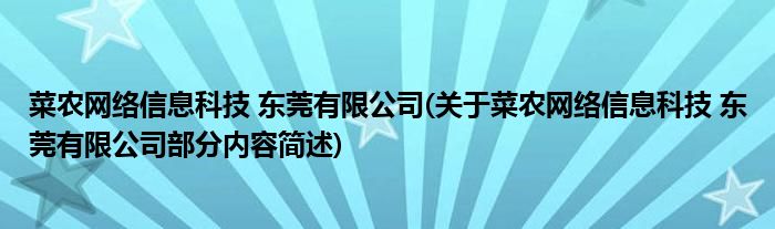 菜农网络信息科技 东莞有限公司(关于菜农网络信息科技 东莞有限公司部分内容简述)