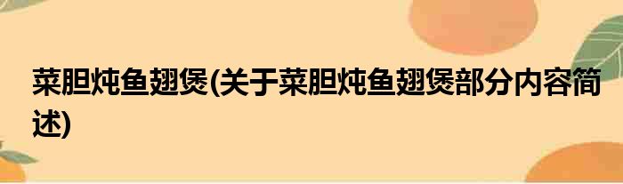 菜胆炖鱼翅煲(关于菜胆炖鱼翅煲部分内容简述)