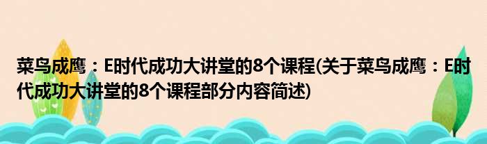 菜鸟成鹰:E时代成功大讲堂的8个课程(关于菜鸟成鹰:E时代成功大讲堂的8个课程部分内容简述)