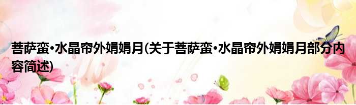 导读 大家好,今天小方来说说一篇关于菩萨蛮·水晶帘外娟娟月,关于菩萨蛮·水晶帘外娟娟月部分内容简述的文章,那么现在就为大家来简单介绍下,