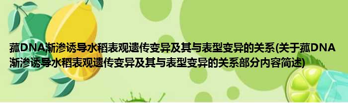 菰DNA渐渗诱导水稻表观遗传变异及其与表型变异的关系(关于菰DNA渐渗诱导水稻表观遗传变异及其与表型变异的关系部分内容简述)