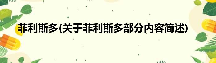 大家好,今天小方来说说一篇关于菲利斯多,关于菲利斯多部分内容简述的文章,那么现在就为大家来简单介绍下,希望对各位小伙伴们有所帮助。
