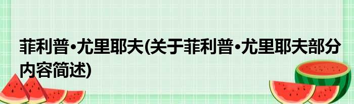 菲利普·尤里耶夫(关于菲利普·尤里耶夫部分内容简述)