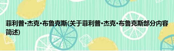 菲利普·杰克·布鲁克斯(关于菲利普·杰克·布鲁克斯部分内容简述)