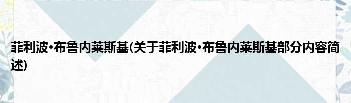 菲利波·布鲁内莱斯基(关于菲利波·布鲁内莱斯基部分内容简述)