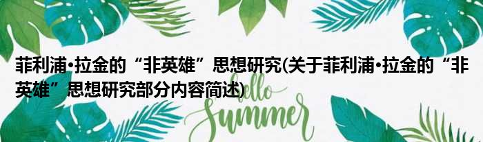 导读 大家好,今天小方来说说一篇关于菲利浦·拉金的“非英雄”思想研究,关于菲利浦·拉金的“非英雄”思想研究部分内容简述的文章,那么现在就