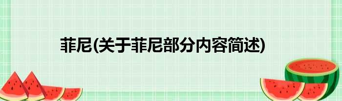 大家好,今天小方来说说一篇关于菲尼,关于菲尼部分内容简述的文章,那么现在就为大家来简单介绍下,希望对各位小伙伴们有所帮助。