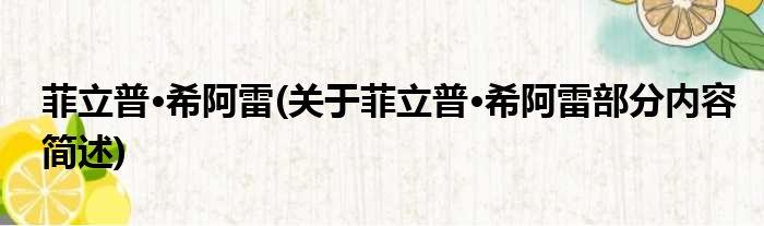 菲立普·希阿雷(关于菲立普·希阿雷部分内容简述)
