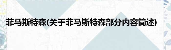 菲马斯特森(关于菲马斯特森部分内容简述)