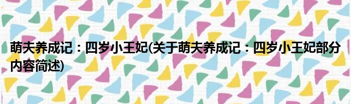 大家好,今天小方来说说一篇关于萌夫养成记:四岁小王妃,关于萌夫养成记:四岁小王妃部分内容简述的文章,那么现在就为大家来简单介绍下,希望对各位小伙伴们有所帮助。