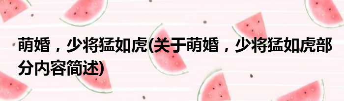 导读 大家好,今天小方来说说一篇关于萌婚,少将猛如虎,关于萌婚,少将猛如虎部分内容简述的文章,那么现在就为大家来简单介绍下,希望对各位小