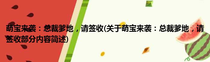 导读 大家好,今天小方来说说一篇关于萌宝来袭:总裁爹地,请签收,关于萌宝来袭:总裁爹地,请签收部分内容简述的文章,那么现在就为大家来简单